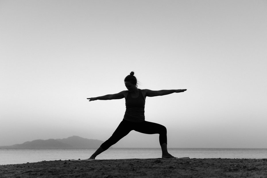 Kriyas, die das Nervensystem und den Mut stärken, z. B. die klassische Bogenschützen-Übung, Dreiecksposition oder Schütteln.